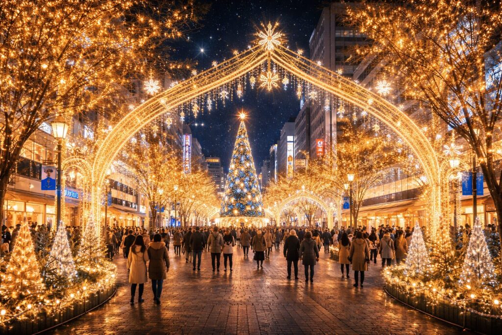 毎年11月〜1月にかけて開催され、約100万球の光が駅前を彩ります。