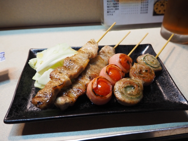 焼き鳥が評判の屋台。タレと塩のバランスがよく、特に豚バラ串はジューシーで絶品。地元の人にも愛され続ける名店です。